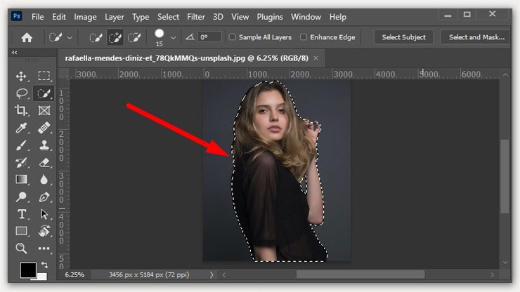 Step-2: You can use any selection tool. You can even use a pen tool to make a perfect selection. If you use an updated version, you can automatically select the object. But make sure the selection is complete.