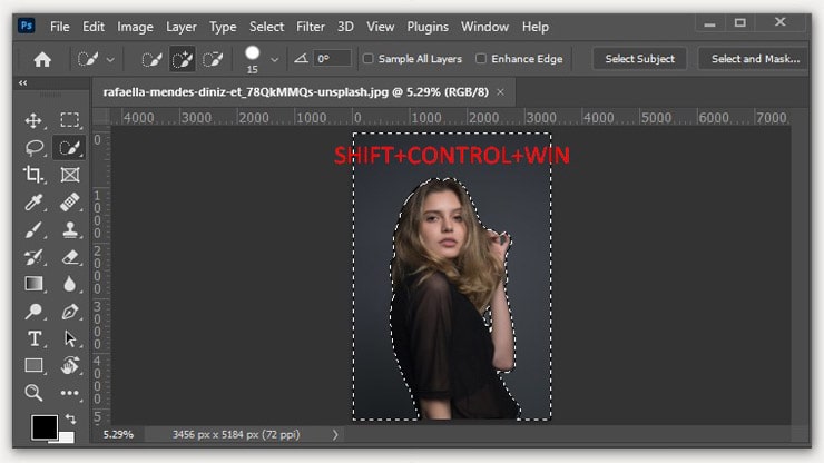 Step-3: As you are done with the selection, now it’s time to invert. Press Shift+Ctrl+I on windows and Shift+Command+I on Mac. It will make a reverse selection of your object.