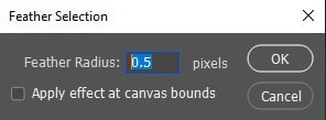 Then, make your selection’s edges smoother by selecting Select > Modify > Feather. Also, you can use the shortcut Shift + F6. The range for Feather radius should be 0.4-0.5.