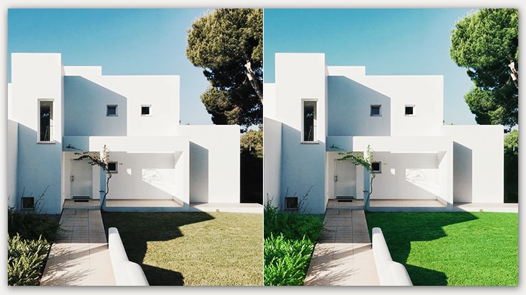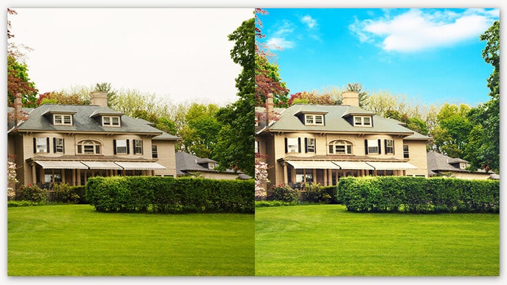 You can add a greenery effect that will increase the glamour of your real estate image.