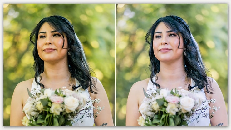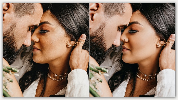 If the photo was taken in a low-light environment, tiny dots might be on the subject’s skin. Noise is a common problem in marriage images. The picture can be affected when the photo has been taken in low light.