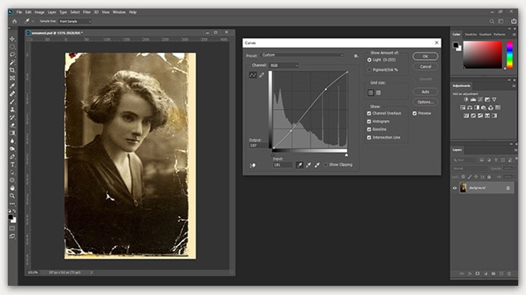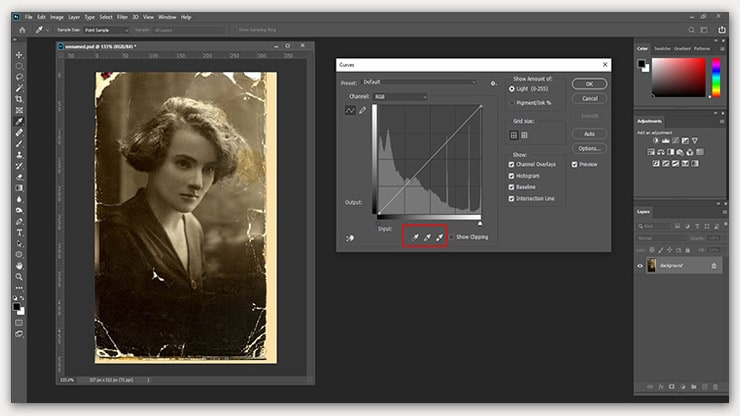 Step 02: Adjusting the Levels and Curves For Photo Restoration