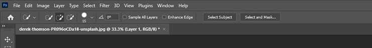 All you need to do is, click on the Refine Edge icon in the toolbox. Now adjust the tool’s settings using the options bar. Finally, use the tool to apply blur, sharpen, and so on.